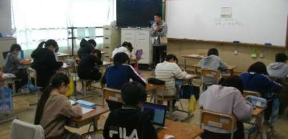 5年生は、5校時が始まるまえに、100マス計算に取り組んでいます。来週の予定確認も進んでいます。