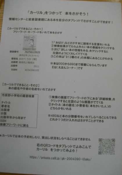 2学期に、図書館司書の先生が、図書検索システム「カーリル」の紹介をしてくださいました。