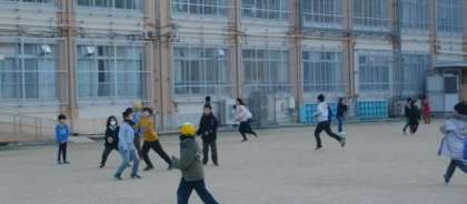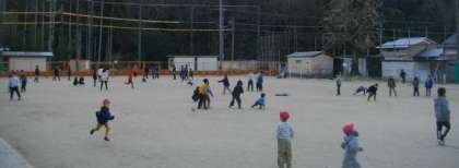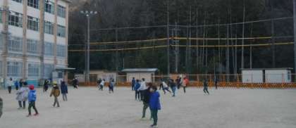 始業前、運動場にはたくさんの子どもたちが遊んでいました。