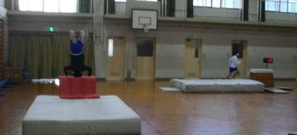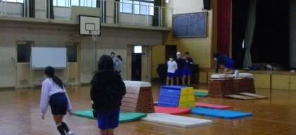 念入りに準備体操をしたあと、跳び箱運動に取り組んでいます。