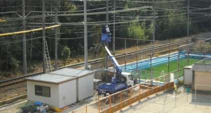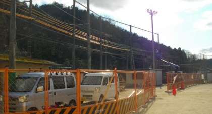 新しい防球ネットの設置にむけても、同時に工事が進んでいます。