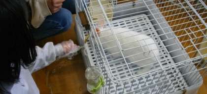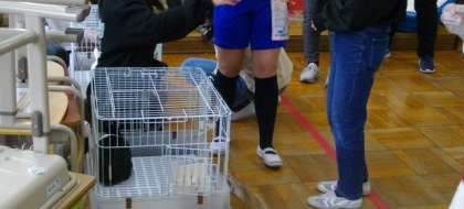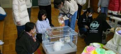 中間休みに、希望者を対象に、うさぎの餌やり体験を実施しています。
