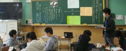 「海の命」を読んで、主人公の考え方や生き方について考えたことをロイロのカードにまとめて共有しています。