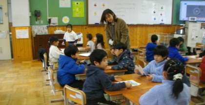 1年生は、英語活動で、好きな色の名前を聞き合っているところです。