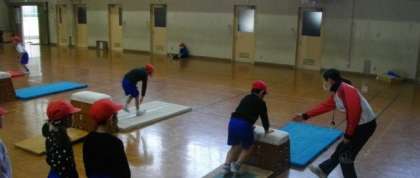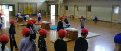 1年生が跳び箱運動に取り組んでいます。