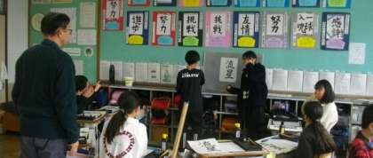 6年生は、書写に取り組んでいます。何に気をつけて書くと、バランスの良い字が書けるのかを相談しながら取り組んでいます。
