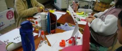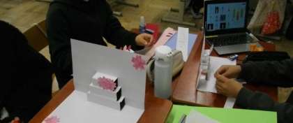 4年生が、立体的なメッセージカードを作っていました。