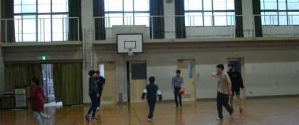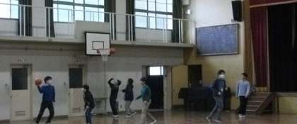 休み時間に、6年生が体育館でバスケットボールを楽しんでいます。