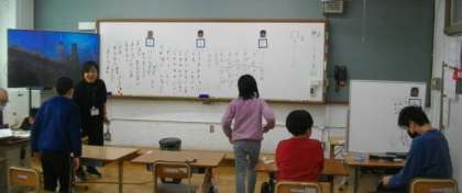 3組は、言葉とジェスチャーを組み合わせて、イメージを広げる学習を進めています。