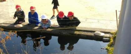 「先生、池にぼくの顔が映っています」