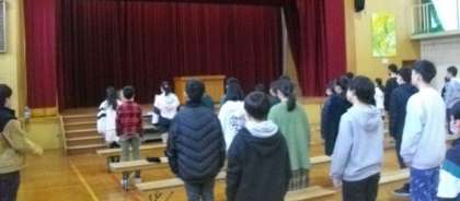 6年生は卒業式の練習に臨んでいます。短時間ですが、凛とした雰囲気で集中しています。