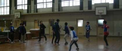昼休みの体育館では、6年生 VS 先生 のバスケットボール大会が行われています。