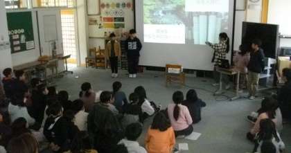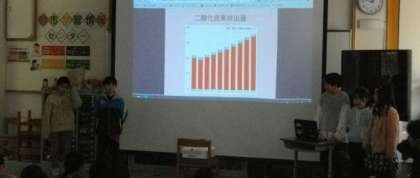 4年生が総合的な学習の時間の学習の成果を発表しています。