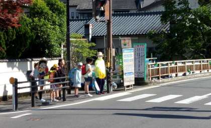 校区内の横断歩道などで、毎日見守り隊の活動していただいています。