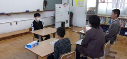3組の朝の会。健康観察に栄養の先生も参加しました。