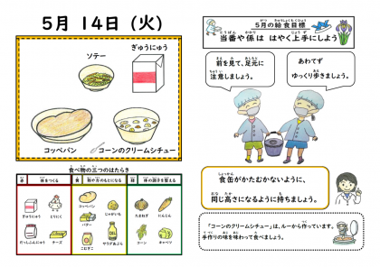 人気のパン献立の日でした。つぶつぶの甘いコーンがおいしい、シチューとパンを組み合わせておいしそうに食べている様子が見られました。