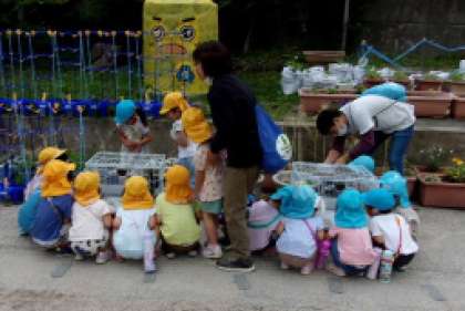 2年生が校区探検から帰ってくると、学校に小さなお客さんが来ていました。
