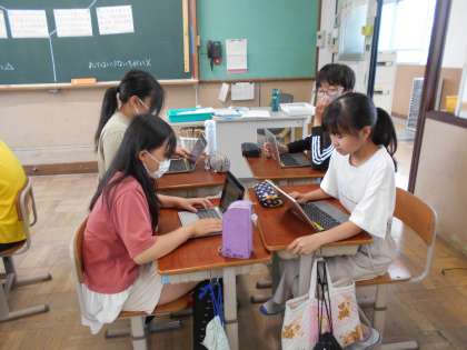 6年1組は算数で分数の学習をしています。2組は6月のいちょうタイムの「ちがいのちがい」についてグループで話し合っています。
