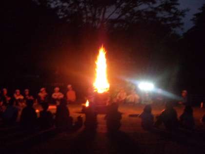 なかなか火の神が現れませんでしたが、点火後はゲームや歌などで楽しみました。