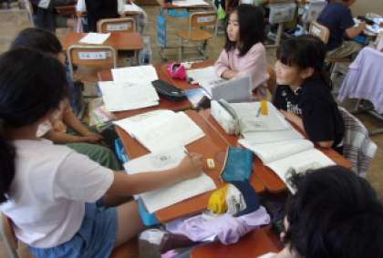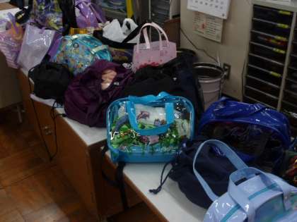 1年生の教室です。いつもとは違う荷物がたくさんありました。