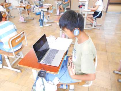 5年生は外国語の学習で明徳小学校と修学院第二小学校の5年生とzoomで交流しました。自己紹介やできることできないことを伝えたり、尋ね合ったりしました。初めてのzoomでの交流に初めはうまく話せなかった児童もいましたが、2回目3回目にはうまく話せたようです。終わった時には「もう終わり?もっと話したかった!」と言っていました。