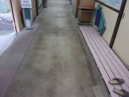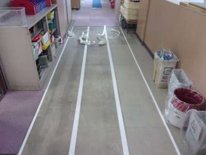 職員室、保健室前の廊下も清掃して、バージョンアップするように用務員さんが作業されています。