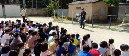 児童が落ち着いて行動したことを署員さんにほめていただきました。