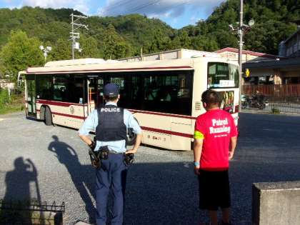 今日は、静原地域に下校する児童のバス乗車を見送って、スタートしました。