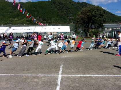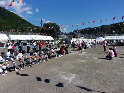 小学生綱引きでは、大人顔負けの迫力で取り組んでいました。