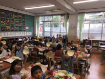 1・2年生がMIX給食(学年を超えて交流給食)でした。前回の交流給食の際に、2年生の食器のきれいさに感銘を受けた1年生、ほうれん草とじゃこのいためものに入っているいりごまやごはん粒をきれいに集めて食べることができていました。