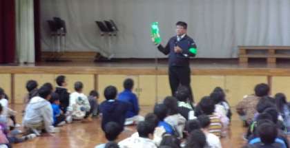 訓練後には、署員さんから命を守ること・「いかのおすし」・子ども110番の家についてのお話をしていただきました。