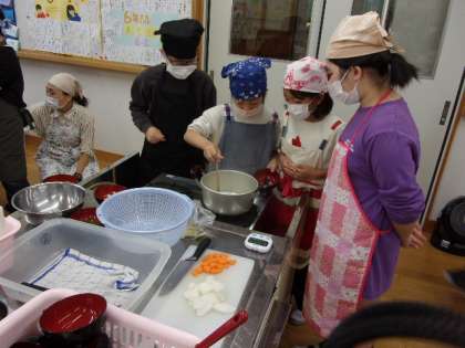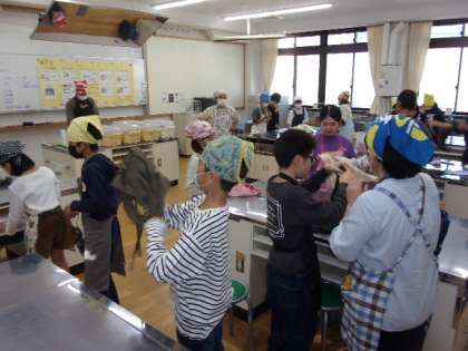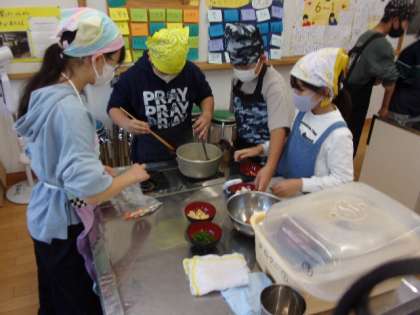 5年生は鞍馬小学校のお友達と一緒に調理実習です。