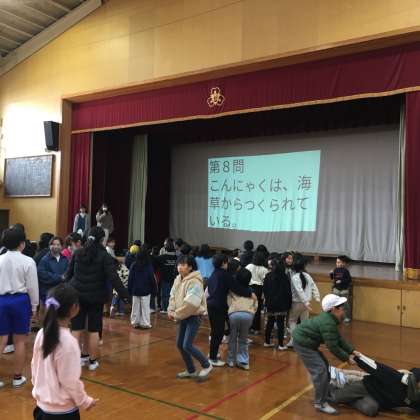 昼休みに給食委員会が企画したイベント、フードフェスティバル(FF)の1日目が開催されました。給食の〇×クイズやつまみ大会、自分の手にあったおはしの長さ測定会、魚釣りなど様々なイベントにたくさんの児童が参加しました。明日の2日目もお楽しみに〜♪