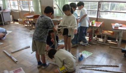 4年生は、協力して作品をつくっています。