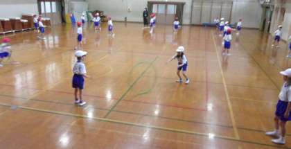 雨の日でも体育館で、1年生は体を動かしていました。