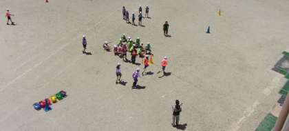 5年生はリレーです。バトンパスがうまくできるかな。