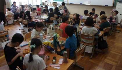 4校時終了のチャイムが鳴り終わった瞬間、教室から「お弁当だ!!」という声が聞こえてきました。皆、楽しみにしていたようです。