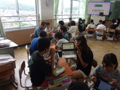 6年生は、英語の時間。学年で互いの紹介をしています。
