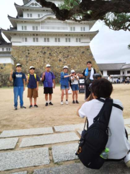 姫路城の前で記念撮影をしました。