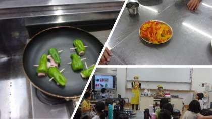 今日は収穫したピーマンをおいしくいただきました。また、色とりどりのピーマンも試食しました。自分たちで育てたピーマンだから、苦手な子たちもいつも以上においしく食べられたようです。