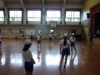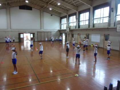 5年生がみんなで動きを合わせています。