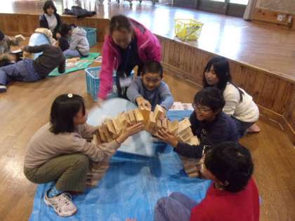 班で協力してアーチづくりに挑戦しました。