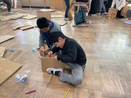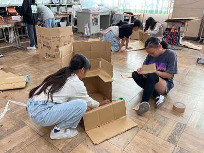 4年生は図画工作の学習でだんボールを使ってクラスで決めたゆめの町を作っています。