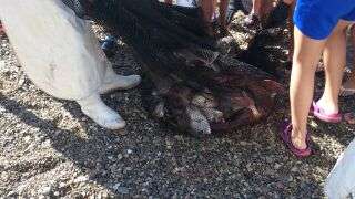 地引網体験ではみんなが力を合わせて頑張ったこともあり 大漁 です。さまざまな魚が網に入っていました。
