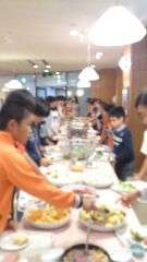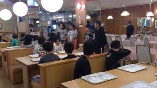 おはようございます。大漁だった地引網体験でのたくさんの魚を,夕食でおいしくいただいた夜が明け,修学旅行2日目の始まりです。豪華な朝食に「いただきます」食欲旺盛です。
