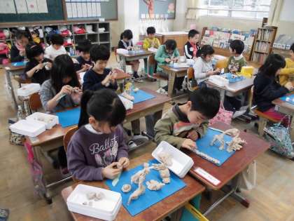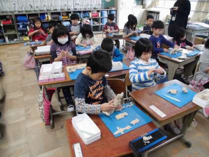 今日の図工の時間に、粘土を使って好きな動物を作りました。