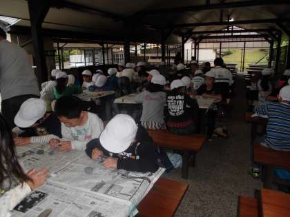 野外炊事までに時間がありましたので,予定どおり「ストーンペイント」をし,その後深谷水道の見学に行きました。深谷水道はとてもきれいな海水で,上から大小さまざまな魚が見えました。