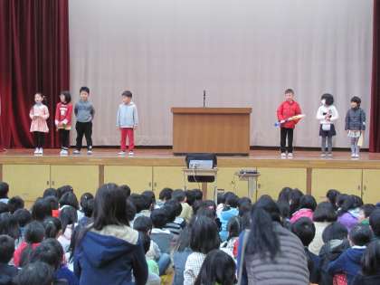 22日(月)のいちょうタイムは,1年生と3年生の発表でした。