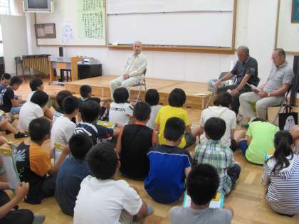 13日(月)に地域のハモハ会の方にきていただき,地域の伝統行事のハモハ踊りや昔の地域のことについてお話を聞きました。