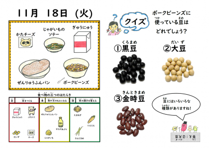 全粒粉パン、牛乳、ポークビーンズ、じゃがいものソテー、チーズ